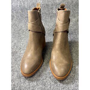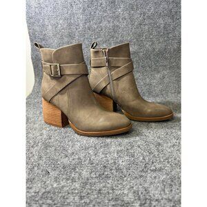 Korks Womens Ankle Boots 8M Brown Taupe Chunky Heel Straps & Buckle