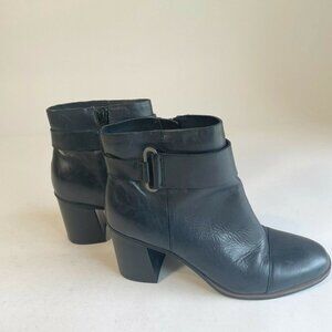 Korks Womens Decola Moto Ankle Bootie Black US 8.5 Leather Side Zip Heels Q40403