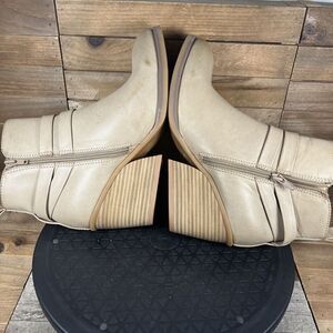 Korks Womens Sz 8M Heidi Block Heel Bootie Ankle Boots Tan Buckled Almond Toe