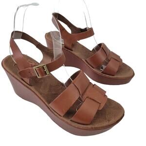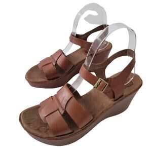 Korks by Kork Ease Platform Wedge Strappy Sandals Size 7 Brown Leather Shoes
