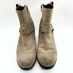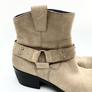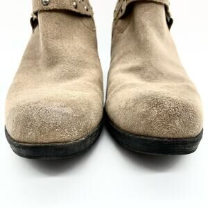 Korks by Kork-Ease Cassandra Moto Stud Harness Heeled Bootie Tan Suede Size 7