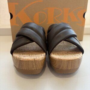 NEW Korks by Kork-Ease Faithe Sandals Quilted Platform Wedge Chocolate Brown Size 10 NIB