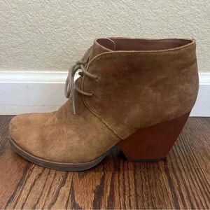 Korks by Kork-Ease Roana Brown Suede Chunky Heeled Lace Up Ankle Booties Size 9M