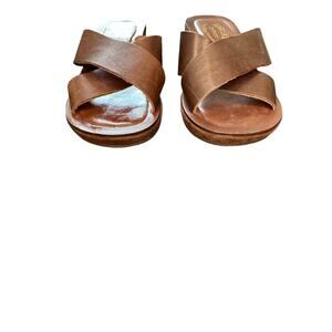 KorksKork-Ease Casual Brown Leather Slip On Open Toe Wedge Sandal Size 5