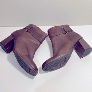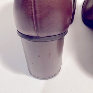 Korks leather brown two tone 3” heel boots, slight scratch on left heel pictured.