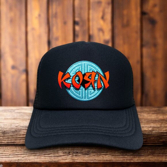 Korn Mens Trucker Hat Black Snapback Nu-Metal Heavy Metal Baseball Cap