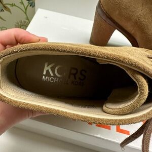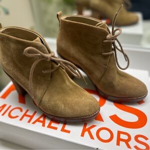 Step up your style with these elegant KORS Michael Kors lace-up booties. Made from soft suede and featuring a sleek lace-up front with a flattering heel, they add a refined touch to any outfit.