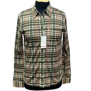 Adorable for Fall - long sleeves in green , cream with reddish brown stripes