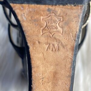 Platform height is 1.25" and heel height is 4.5". In very good pre-owned condition. Normal wear and tear noted, there is some slight wear at the toes and a spot where the platform has a peeled area, shown in the last two photos. Please review pictures and feel free to ask any questions or for more pictures prior to purchasing.