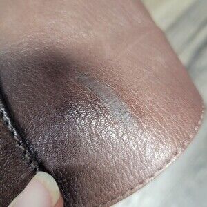 one minor spot at very top where leather is worn. Barely noticeable especially when wearing