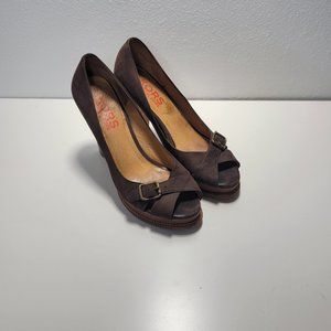 KORS BY MICHAEL KORS Brown Leather peep toe pumps shoes size 7