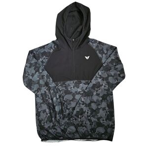 Korsa Mens Sz LG 1/2 Zip Packable Camo Windbreaker Thermal Hoodie Skater Outdoor