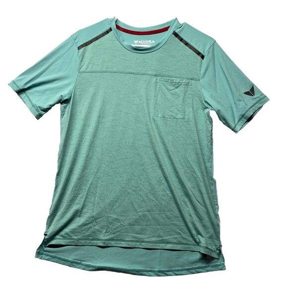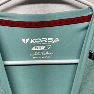 The Korsa Road Runner Sports Shirt for men in size small is a blue short sleeve activewear top perfect for running and jogging. Made from a blend of polyester and spandex, this shirt features a solid pattern, crew neckline, and a pullover closure for easy wear. With a medium fabric wash and athletic fit, this shirt is designed for comfort and performance. The quick-dry and stretchy features make it ideal for active occasions, while the basic style and sports theme add a touch of sporty flair. Perfect for men who enjoy staying active and looking stylish.