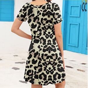 Korsis Animal Print Round Neck Swing Short Sleeve Jersey Dress
