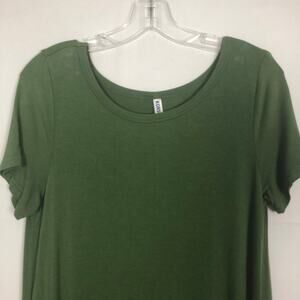 Korsis green t-shirt dress. Round neck. Short sleeves. Soft fabric. Gently used. No visible flaws.