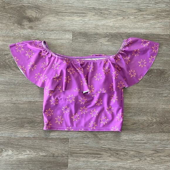 Kortni Jean Ruffled Around Tankini Top Purple Size Small
