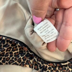 High-waisted swim bottoms. Leopard print design. Stylish and comfortable.
