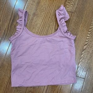 GUC, swim top in ribbed rose. Flattering and modest fit, swim tank.
