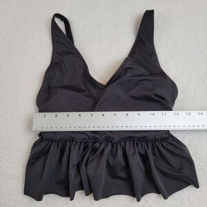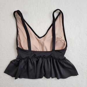Kortni Jeane Swim Top Small Peplum Ruffled V Neck Solod Black Swimsuit