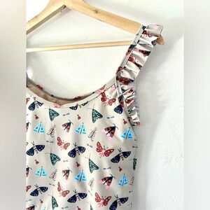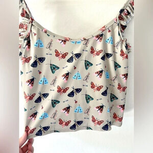 Kortni Jeane Taupe Moth Pattern Ruffle Strap Swim Tank Mix & Match Medium