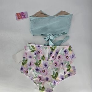 Kortni jeane two peice blue top and floral bottom high rise size medium