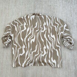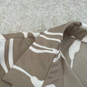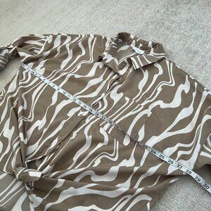 A boho printed tab sleeve tie front button up shirt blouse top. Fabric is a little sheer and has a little stretch