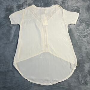 Kosmika Crewneck Crochet Trim Blouse Size Small NEW Semi Sheer Boho Cottagecore