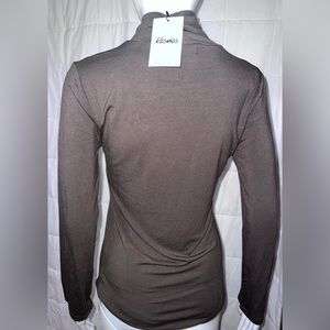 I took pictures with the flash on & off so you could see the quality & true color. It is a true olive. The flash just makes it look darker.