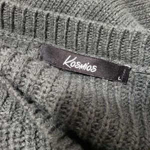Kosmios size Large Dark Gray Open Shoulder Tunic Acrylic Open Knit Top