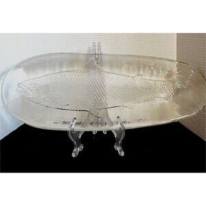 The Vintage Swedish Kosta Boda Glass Salmon Platter showcases a clear, glossy finish, feat