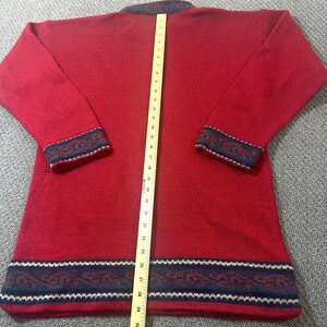 Kotare Pullover Sweater Womens Red Blue Ikat Knit Crew Neck Long Sleeve Holiday