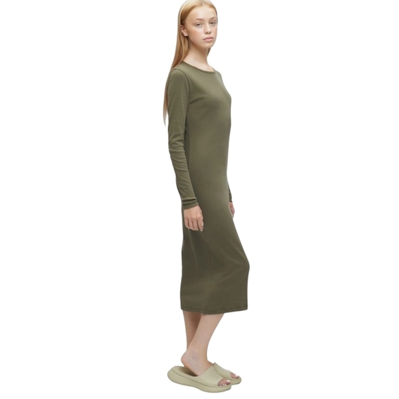 Kotn olive green 100% European cotton Pullover longsleeve Midi dress