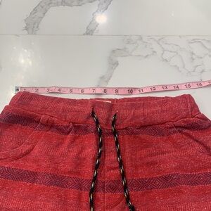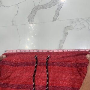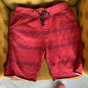 Men’s Koto Shorts. Colorful, comfy sweater like material. Draw string cord around the waist. Very comfortable. In excellent condition. Color Red with darker red stripes. Size Small (14MSH)