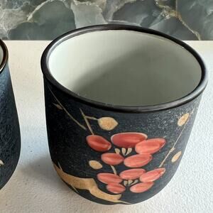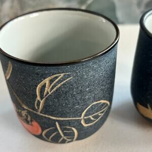 The Kotobuki Japanese Ceramic Tea Cups are a beautifully crafted set of 2 tea cups featuring an orange persimmon etched design. Handmade in Japan, these tea cups showcase traditional Japanese culture and craftsmanship. The cups are perfect for enjoying a cup of tea while appreciating the artistry of Japanese design. Made by the reputable brand Kotobuki, these tea cups are a unique and collectible addition to any tea set collection.