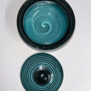 Kotobuki Japanese Small Bowl With Lid Swirl Blue 3.5”x3” EUC
