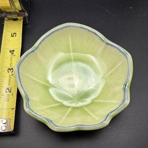 Kotobuki Style Green Crackle Glaze Leaf Pottery Bowls.