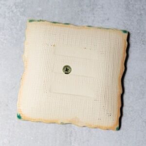 A pretty blue-green square plate from Kotobuki. Made in Japan with original sticker on the bottom. No defects noted. Measures 4.25" square. Smoke- and pet-free home.