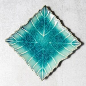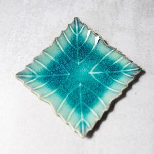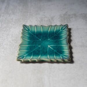 Kotobuki blue green square leaf trinket dish plate vintage made in Japan