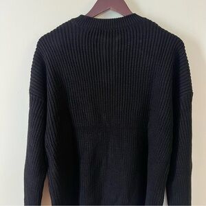 Brand new. Black knit 1/4 zip neck. Knit pullover. Ribbed. Long sleeves. Large circle hoop zipper pull.