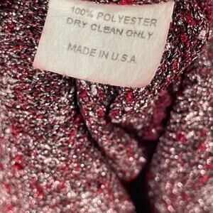 • Features: Sleeveless, V neckline, Above knee length, Unlined, Burgundy with silver metallic threading throughout, Beaded knotted upper band, Pullover styling