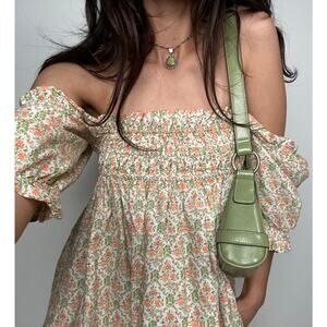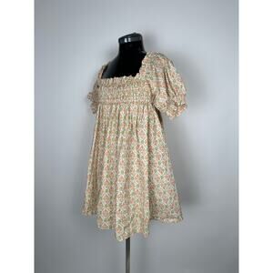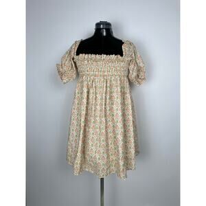 XL tunic that makes the perfect babydoll style dress. Vibrant orange and green flower design with tiny lavender accents. Fits like a size S as a dress.