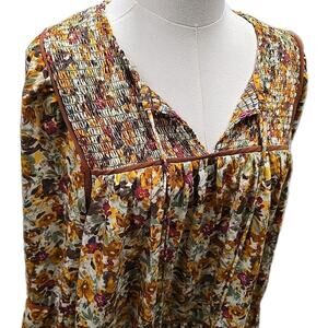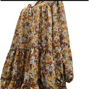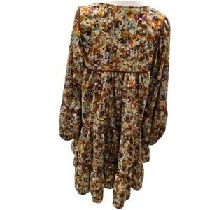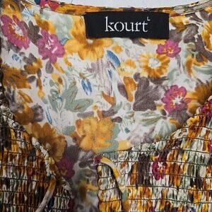 Kourt Kady Dress Sz L Ditsy Floral Smocked Tiered Babydoll Boho Puff Sleeve