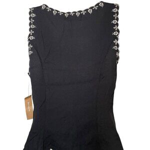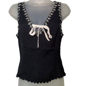 Kourt Leni Black Embroidered Tie Front Tank Top Size 4