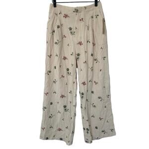 NWT Kourt Sheri Cream High Waisted Wide Leg Floral Print Pants Size 4