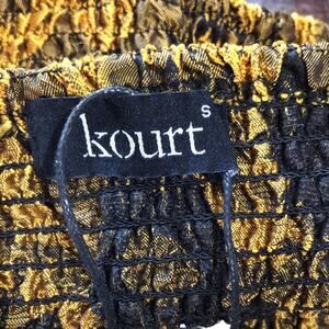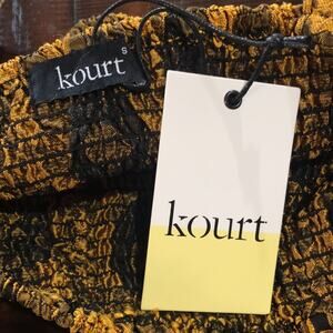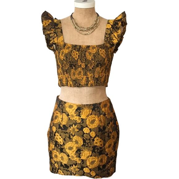 Kourt Tala Crop Top & Mini Skirt NWT NEW Set Size Small Black Yellow Gold Floral