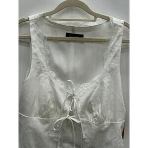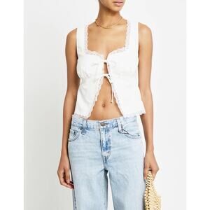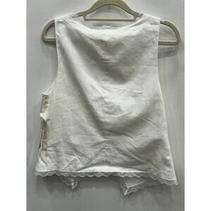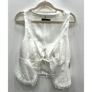 Kourt Women's Odette White Lace Trim Tie-Front Linen Blend Crop Top Size 6 NWOT