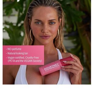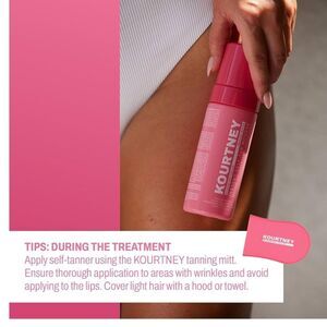Kourtney Instant Self-Tan Mousse in vibrant pink packaging. Easy to apply for a natural glow.