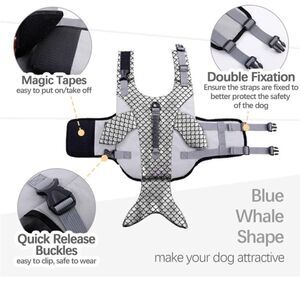 Kouser Dog Life Jacket Life Vest Flotation Device Silver Whale Design Size XXL