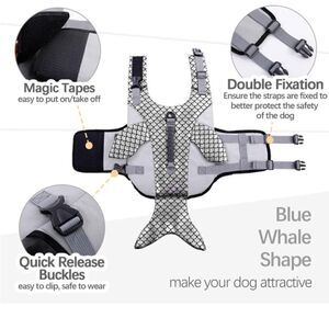 Kouser Dog Life Jacket Life Vest Flotation Device Silver WhaleDesign Size XL NEW