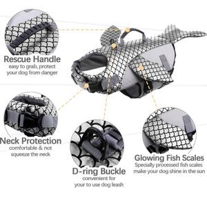 Kouser Dog Life Jacket Silver Whale Design Size S - please see picture for size chart information